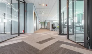 We vacuum open traffic areas and visible carpet, carefully edging around desks, chairs, and heavy office furniture without disassembly.